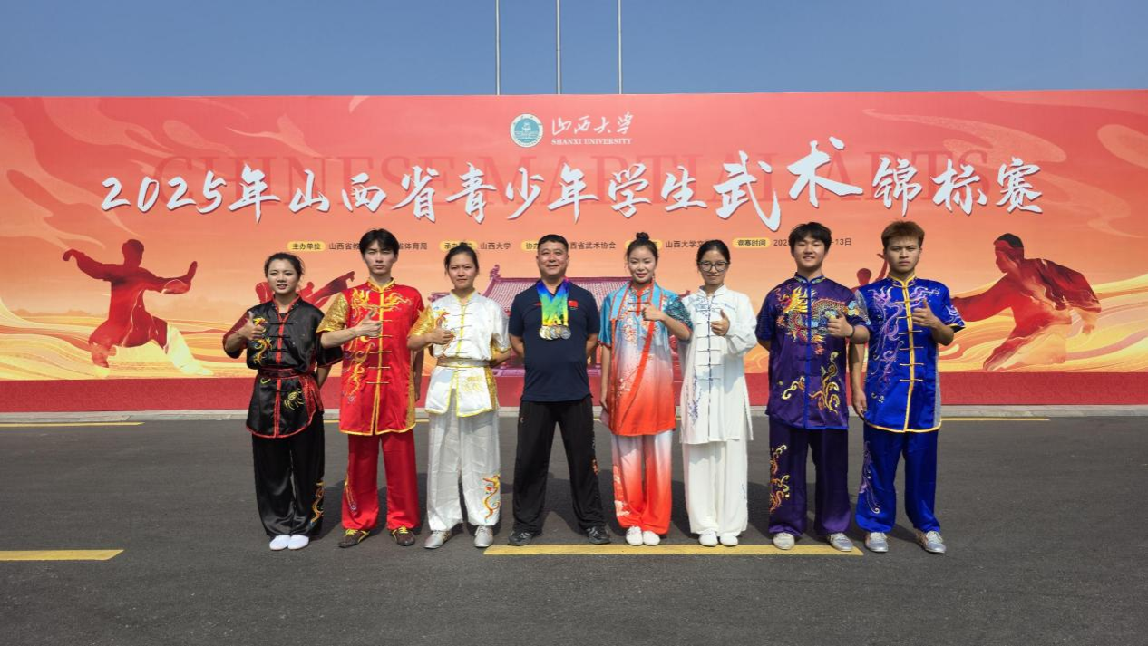 2025年山西省青少年学生武术锦标赛7月11日至13日在山西大学举行。我校武术队凭借顽强拼搏精神,共夺得三金、三银、一铜,为学校赢得荣誉。