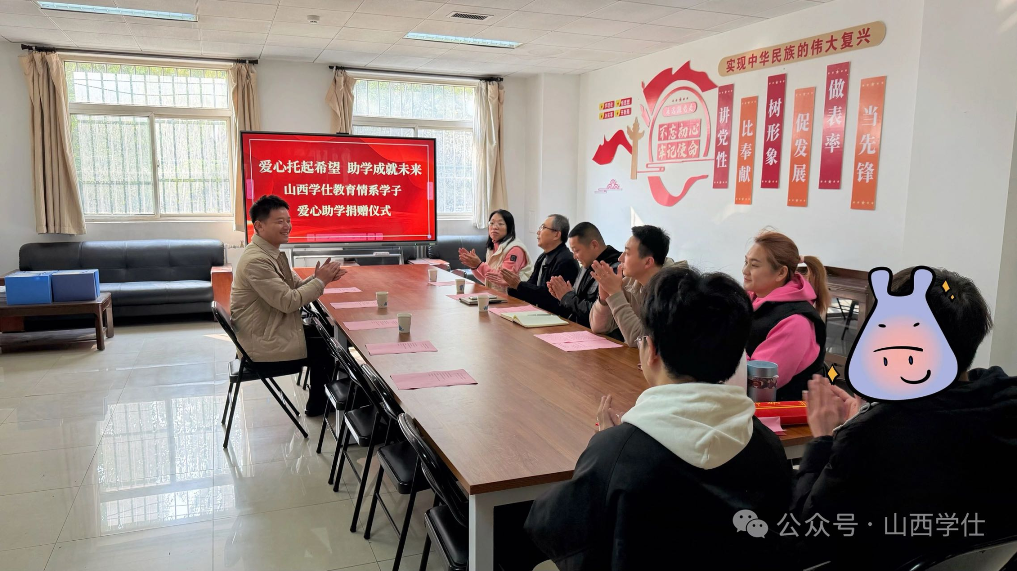 10月29日,山西学仕教育对我院一名贫困学子进行了爱心捐助仪式在学院会议室举行。山西学仕教育校长何冬、我院党委书记杨海庆、副书记苗文广、副院长岳冠华、学工代表及受助学生参加了活动。