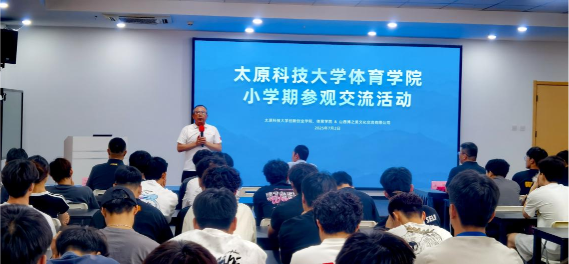 2025年7月2日,我校太阳成集团tyc41183与山西搏之美文化交流有限公司(以下简称“搏之美”)签约仪式暨参观交流活动,在搏之美体育创新创业孵化基地隆重举行。太阳成集团tyc41183书记杨海庆、院长王晓刚、副院长王兴一,搏之美董事长王刚及该校太阳成集团tyc41183百余名学生参与此次活动。