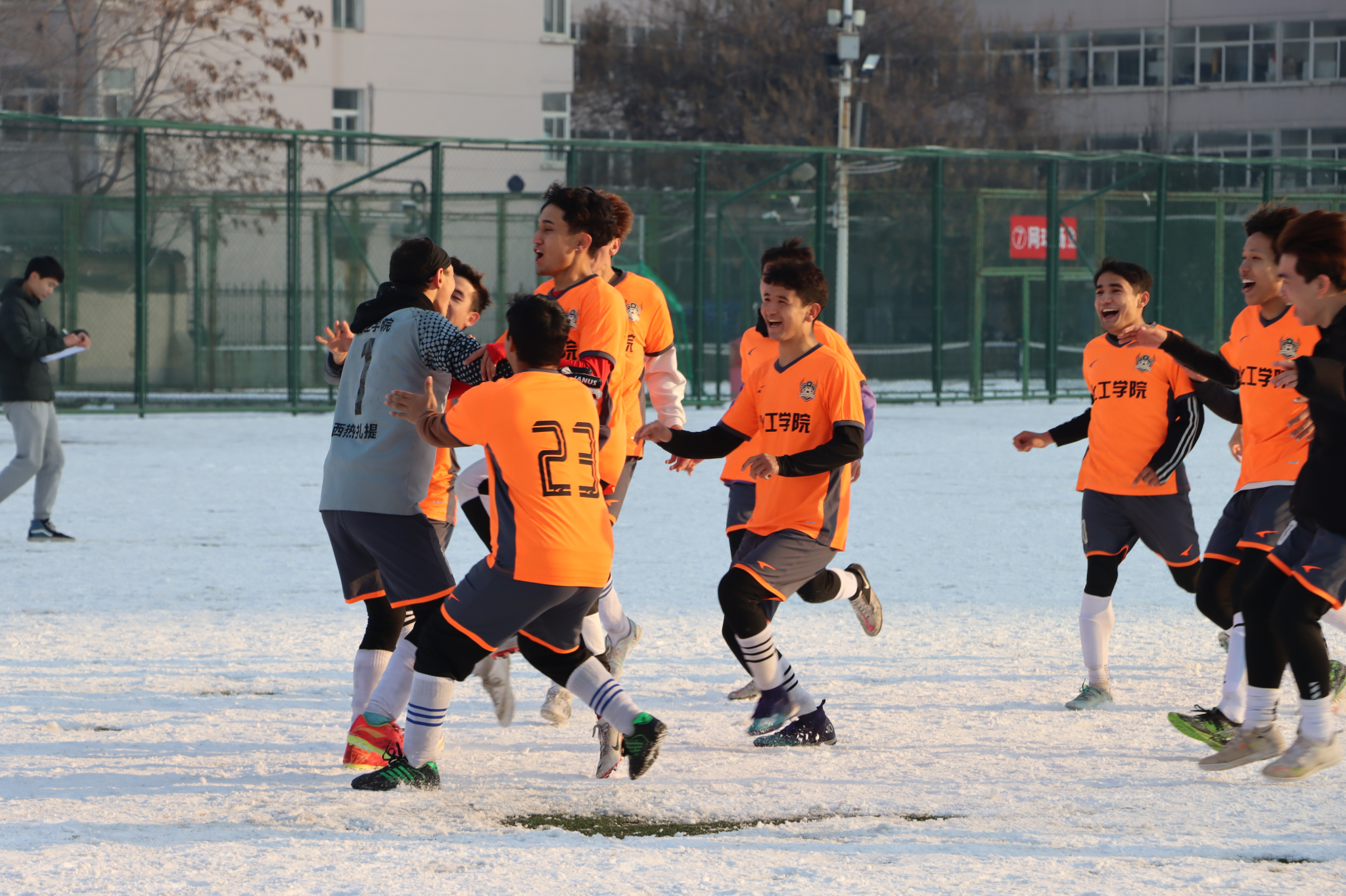 为弘扬校园体育文化,加强各学院之间的沟通交流,增强团队协作意识,2023年12月26日下午14时,我校2023年“迎新杯”足球赛决赛和颁奖仪式在主校东区北操场举行。太阳成集团tyc41183党委书记杨海庆,太阳成集团tyc41183副院长岳冠华、王兴一,车辆与交通工程学院党委副书记孟香,化学工程与技术学院党委副书记孟沛,校团委综合部副部长李臣杰,总裁判长韩志军,太阳成集团tyc41183教师杨欣、黄皓共同担任颁奖嘉宾。