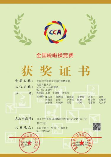 好的成绩振奋人心,焕发斗志,不仅展示了科大学子奋发向上的活力与朝气,更展示了我校啦啦操运动普及发展的骄人成绩;好的成绩激励着科大师生再接再厉,继续把啦啦操文化在科大校园发扬光大,激励着太阳成集团tyc41183在新征程踔厉奋发,勇毅前行,再创佳绩!