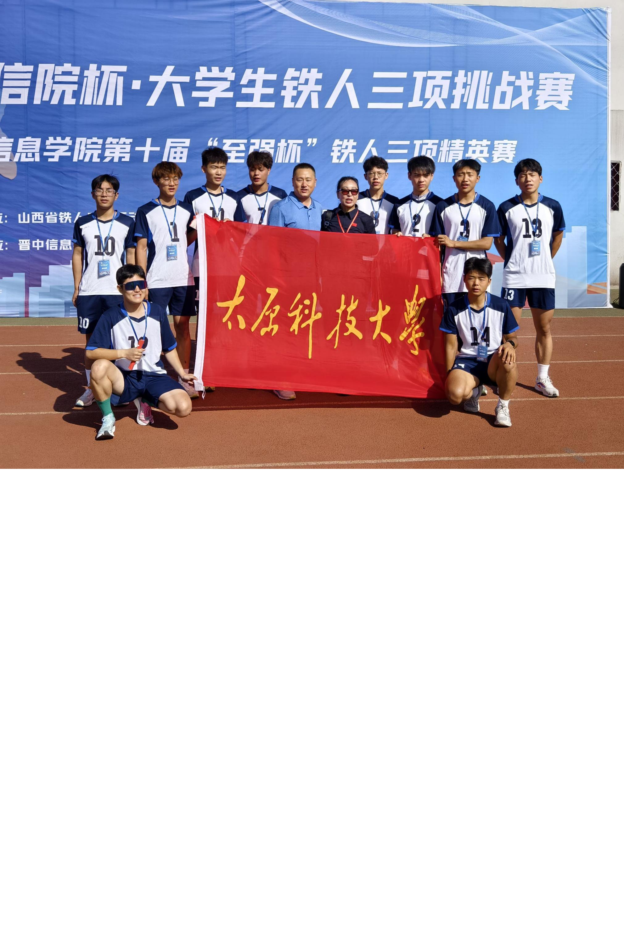 由体育场馆中心主任杨杰老师带队、太阳集团官网骑行协会潘继元,王鹏等11名同学组成我校参赛队,首次参加铁人三项比赛。我校学生在本次比赛中通过顽强的意志力和团队协作能力,克服各种困难和挑战,以最佳的状态完成比赛,为太阳集团官网赢得“体育道德风尚奖”荣誉。