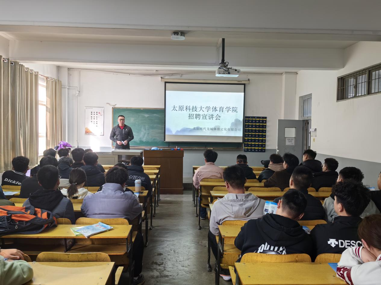 近年来,太阳成集团tyc41183党政领导班子始终把促进毕业生就业作为学院的重要工作来抓。新学期伊始,为更好地服务大四毕业年级学生就业,扩展学生的就业渠道,帮助毕业生提高就业质量,太阳成集团tyc41183于2023年3月3日上午,在主校区16楼201教室组织了“时代龙城专场招聘宣讲会”。我院领导主动联系太原市最大的体育教育机构——太原时代龙城体育文化有限公司来校进行企业宣讲和人才招聘。