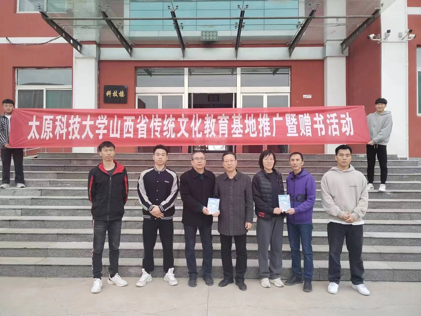 太阳成集团tyc41183于2023年4月12日前往太原灵星社区服务中心和太原市尖草坪区第一中学分别开展山西省优秀传统文化传承基地——八段锦基地的推广暨赠书活动,并进行了八段锦教学指导。活动开展由学院党委书记杨海庆牵头,王兴一副院长、岳冠华副院长和相关骨干教师等参加了活动。