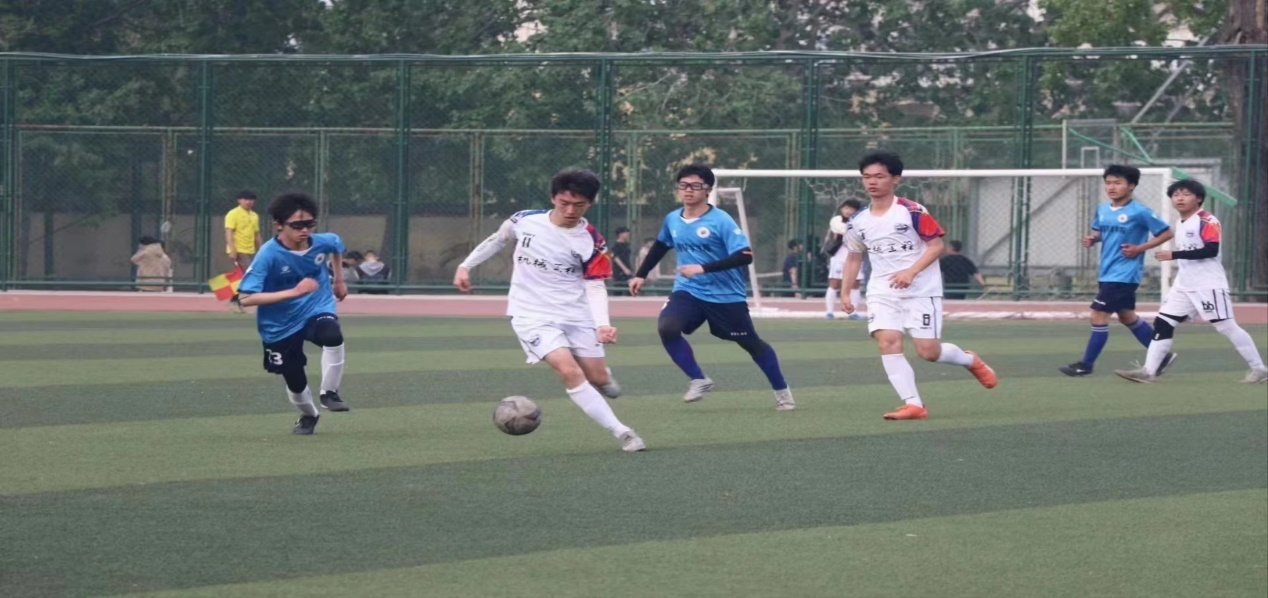 双方球员都摩拳擦掌,斗志昂扬。随着裁判王兴一老师哨声的响起,双方都展现了明显进攻意图,但均未突破对方防守。还是车辆与交通工程学院率先打破僵局,拿到一分。化学工程与技术学院也不甘示弱,通过球员的个人能力和默契配合也拿下了一球。双方你来我往,足球在球员脚下虎虎生风。随着时间的流逝,比赛结束的哨声响起,最终化工学院以4:2拿下了比赛。今天体育竞技的魅力在足球场上绽放,发出了绚丽的光芒,映射在了每位球员的脸上。